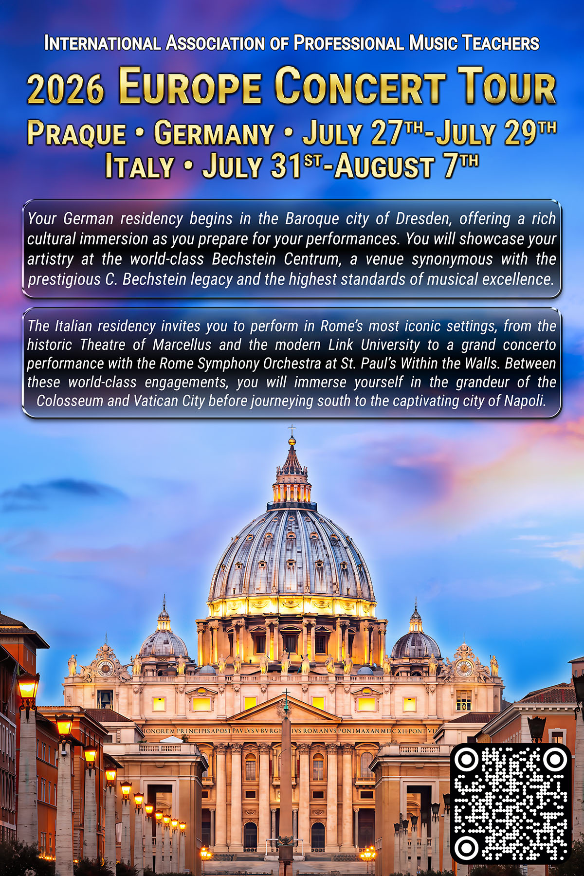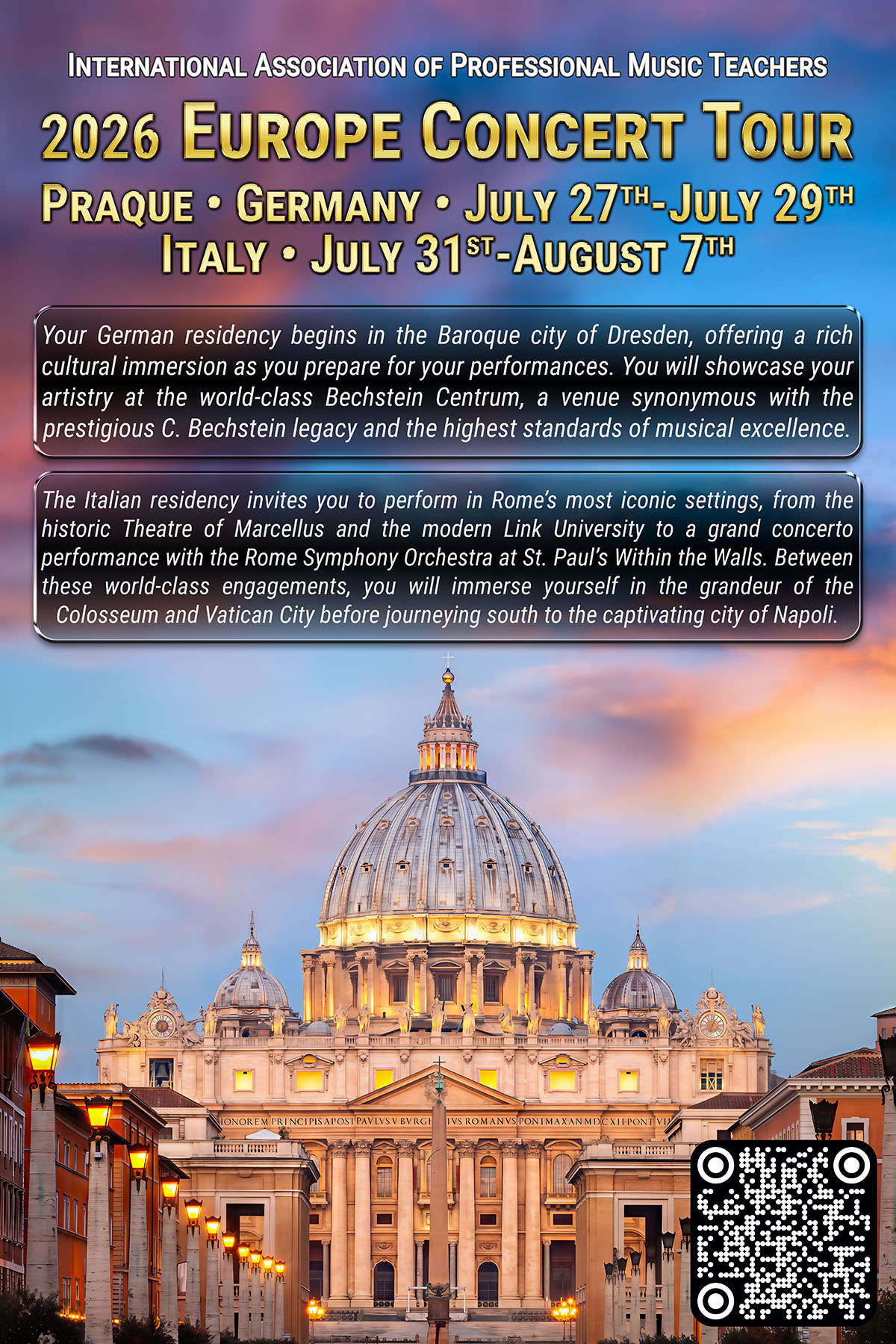 “I am thrilled to join the IAPMT in order to provide my experience and knowledge to the next wave of performers, as well as contributing to their noble effort of keeping the flame of classical music burning brightly so that we may gift it to future generations and beyond.”