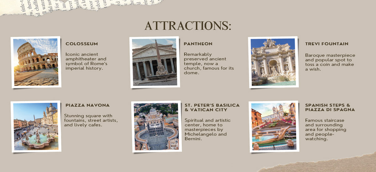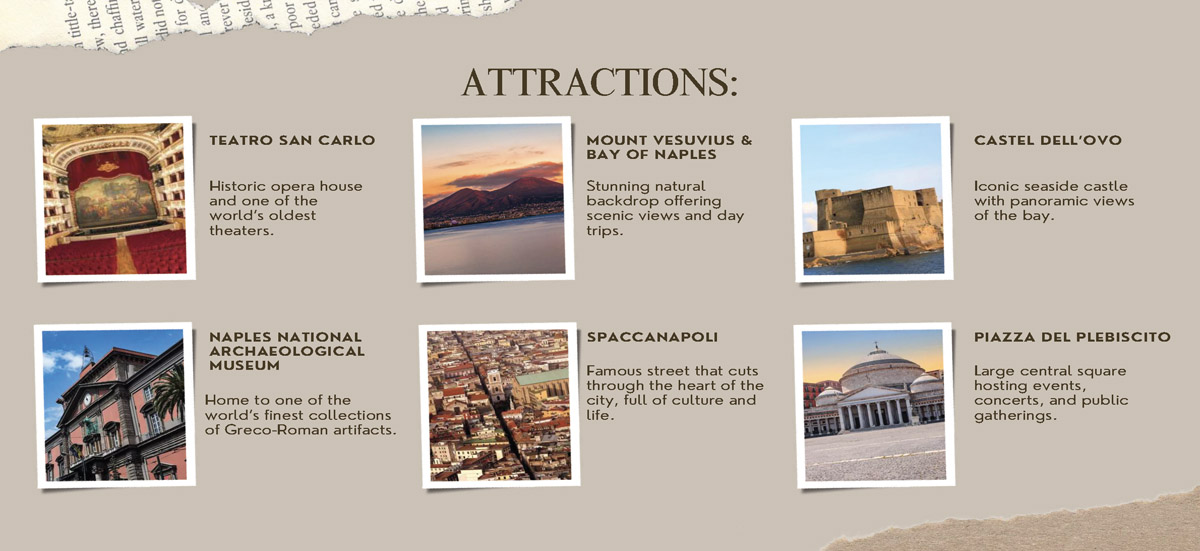 저희 투어의 이탈리아 부분은 웅장한 로마와 나폴리 도시로 이어집니다. 콜로세움부터 바티칸 시국까지 고대 로마의 웅장함을 경험한 후, 매혹적인 도시 나폴리로 남쪽으로 여행하게 됩니다.